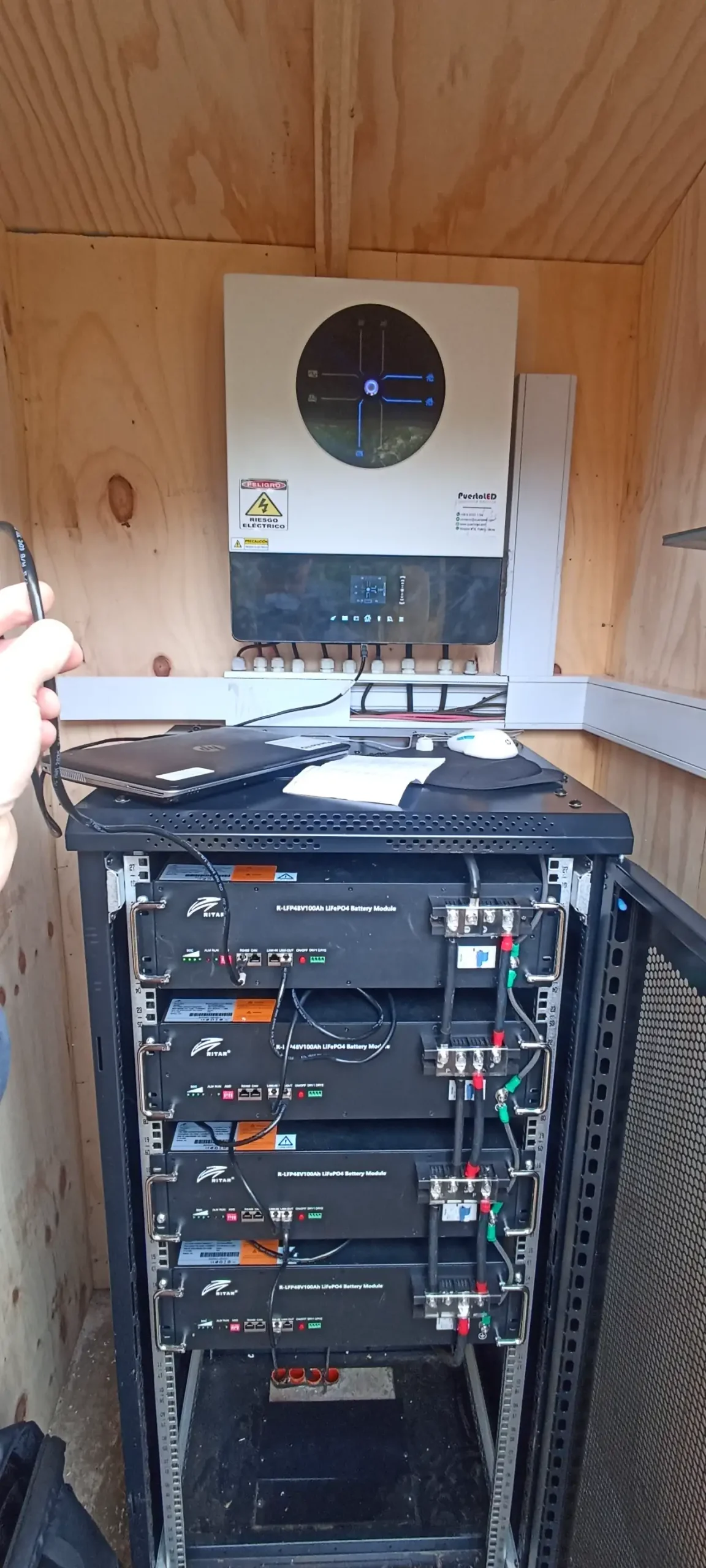 La solución considera 18 paneles solares monocristalinos de 585 W montados sobre estructura galvanizada inclinada, conectados a un inversor cargador MPPT de 11 kW, junto con 4 baterías de litio de 48V 100Ah para respaldo y acumulación de energía.