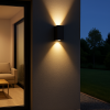 Este aplique de pared destaca por su diseño geométrico minimalista, concebido para integrarse de forma elegante y discreta en ambientes contemporáneos. Con una estructura rectangular en acabado negro mate texturizado, proyecta una estética sobria y atemporal que lo convierte en una pieza versátil, apta tanto para interiores modernos como para aplicaciones en exteriores de alta gama.