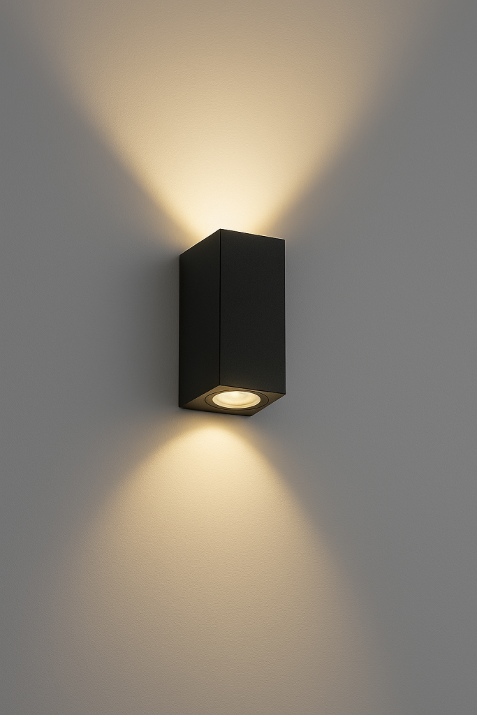 Aplique LED de muro, ideal para fachadas, pasillos, terrazas, entradas o muros decorativos donde se busca una iluminación cálida, moderna y de bajo consumo. Su diseño rectangular en color negro proyecta luz en dos direcciones, creando un efecto decorativo elegante que realza el muro y aporta estilo al espacio.