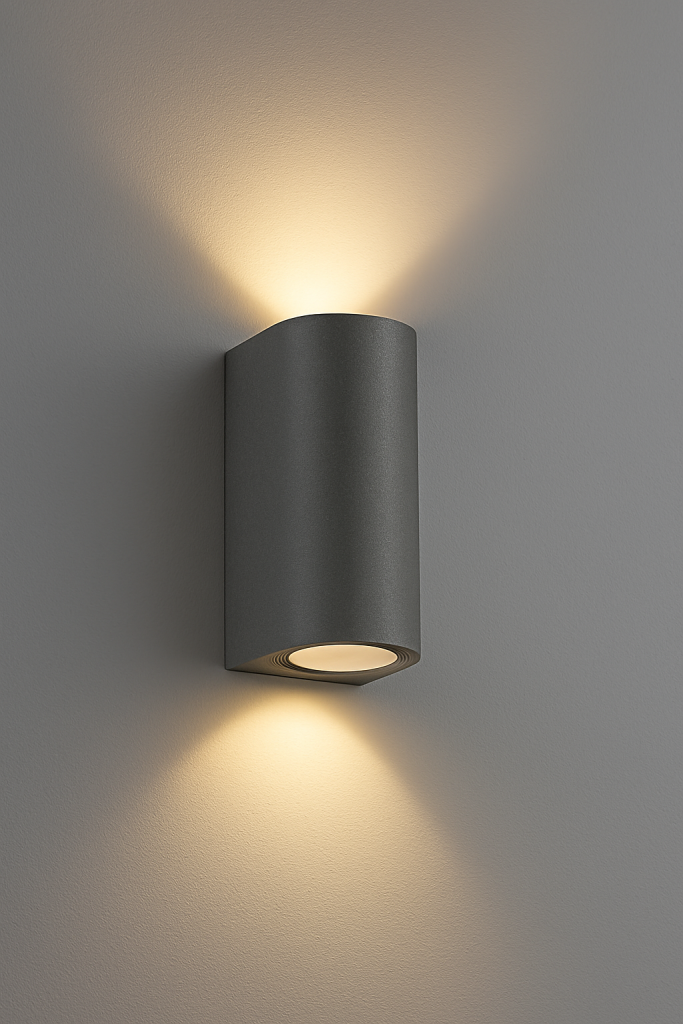 Aplique LED de muro, ideal para pasillos, entradas, terrazas, fachadas o muros decorativos donde se busca una iluminación cálida, moderna y de bajo consumo. Su diseño en color gris proyecta luz en dos direcciones, creando un efecto decorativo elegante que ayuda a resaltar el muro y dar más ambiente al espacio.