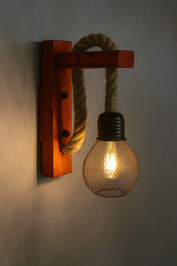 El Apliqué Decorativo de Madera Con Pantalla de Rejilla E-27 es un diseño de estilo único e inigualable que podrás utilizar en cualquier espacio para decorar tus ambientes con un toque moderno. Con su cuerda de cáñamo mezclado con madera y su pantalla de rejilla, esta lámpara te permite decorar interiores como tiendas, locales comerciales, restaurantes o los propios espacios de tu casa. Las dimensiones de la lámpara son de 290 x 200 x 120mm. Producto incluye ampolleta.