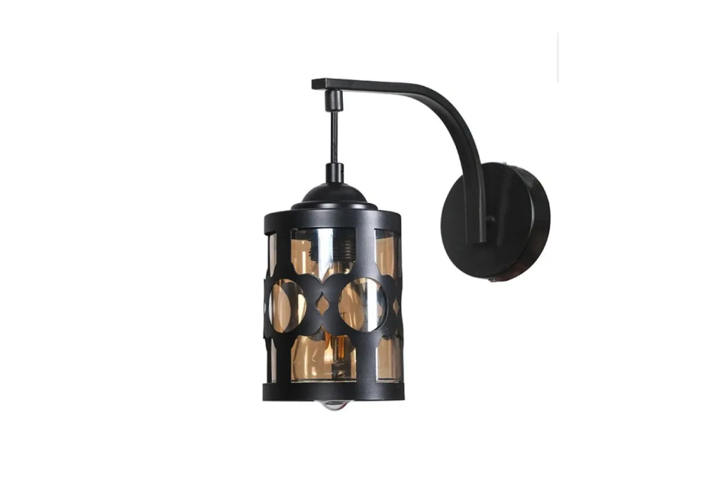 Este elegante aplique de pared combina lo mejor de la estética vintage con la funcionalidad moderna. Su estructura de metal negro mate y su diseño geométrico en la base ofrecen un contraste atractivo, mientras que el cristal ámbar de la lámpara difunde una luz cálida que aporta calidez y un ambiente acogedor a cualquier espacio.