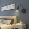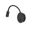 Este dormitorio representa un espacio contemporáneo, funcional y acogedor, donde el diseño minimalista se combina con elementos de confort para lograr una atmósfera equilibrada y sofisticada. El protagonista en la pared es un aplique de lectura flexible en acabado negro mate, diseñado con un brazo articulado tipo “gooseneck” que permite orientar la luz de manera precisa hacia el área deseada. Su diseño discreto y moderno se integra perfectamente en el entorno, aportando tanto valor estético como funcional.