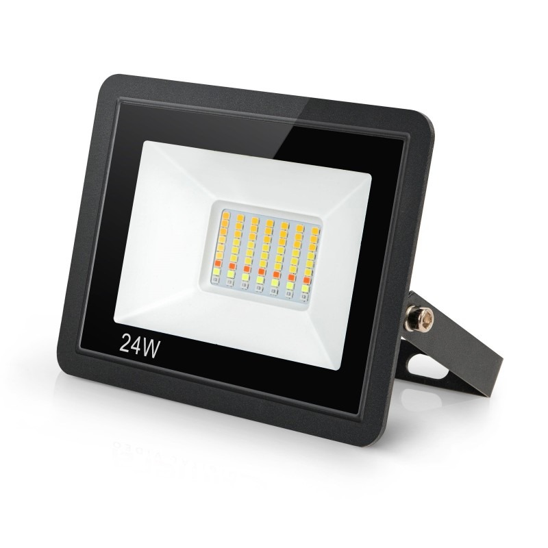 Fabricado con un cuerpo de aluminio inyectado de alta resistencia, el proyector ofrece una excelente disipación térmica y una protección IP65, lo que lo hace ideal para uso en exteriores (fachadas, jardines, terrazas, señalización, áreas de acceso o eventos nocturnos) y ambientes interiores que requieran iluminación decorativa o de ambientación.