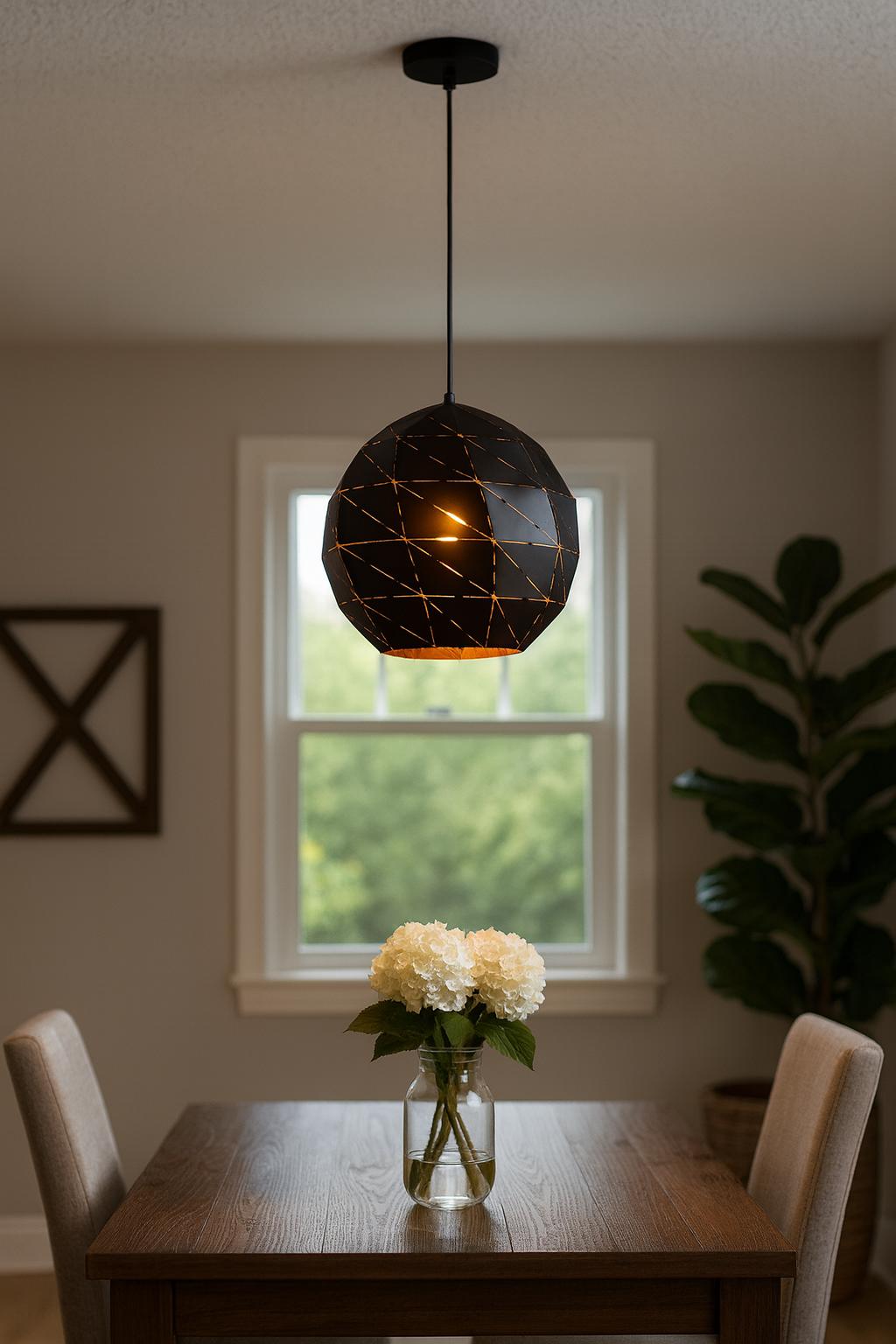 Haz que tu iluminación sea parte de la decoración con esta lámpara colgante moderna de diseño geométrico. Su pantalla esférica en color negro mate con interior dorado crea un contraste elegante que aporta calidez y estilo a cualquier espacio. Gracias a sus cortes facetados, la luz se filtra de manera única, proyectando destellos y sombras decorativas que transforman el ambiente en un espacio acogedor y sofisticado. Perfecta para destacar sobre mesas de comedor, salones o incluso en bares y restaurantes con decoración contemporánea. Compatible con bombillas E27 tipo Edison o LED, esta lámpara combina funcionalidad, resistencia y diseño exclusivo, convirtiéndose en la elección ideal para quienes buscan más que una simple luminaria: un verdadero elemento decorativo.