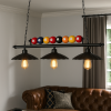 Ilumina tu espacio con estilo único y personalidad. Nuestra lámpara colgante de billar combina diseño industrial con un toque divertido gracias a su detalle decorativo de bolas de pool. Fabricada en metal negro de alta resistencia, cuenta con tres pantallas tipo campana y portalámparas E27 compatibles con ampolletas LED estilo vintage Edison. Ideal para mesas de billar, salas de juegos, bares o espacios con decoración retro-industrial, esta lámpara no solo aporta luz cálida y agradable, sino también un elemento decorativo llamativo que será el centro de todas las miradas.