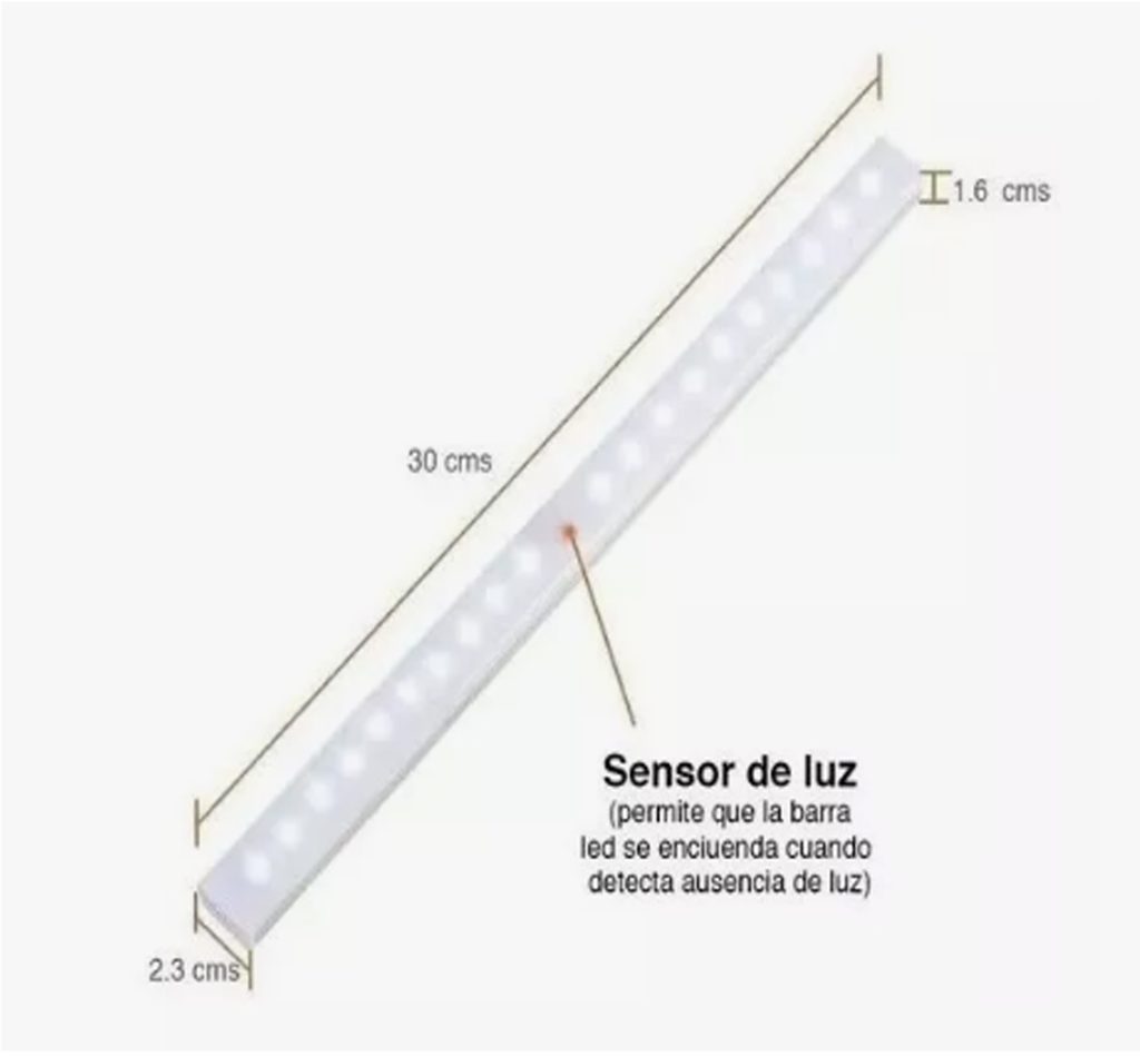 • Esta luz led posee un sensor, el que permite que se encienda cuando detecta movimiento.